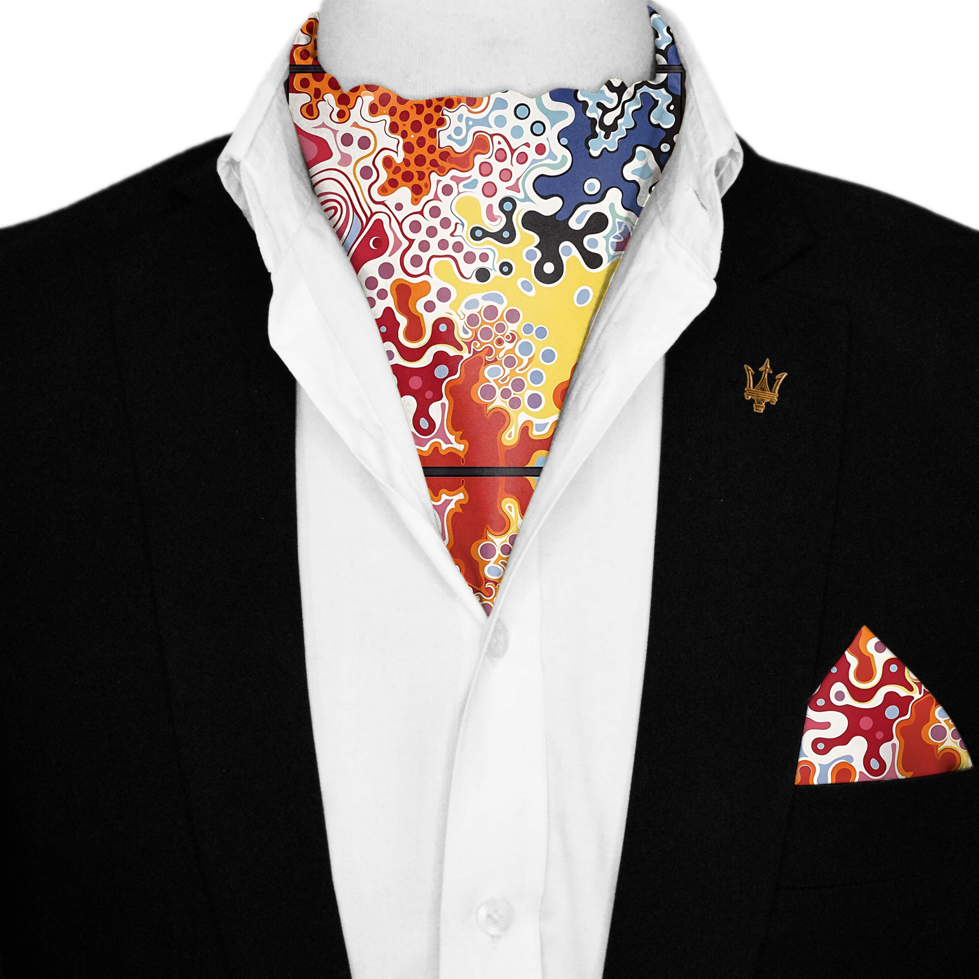 ABSTRACT KEYNOTE SILK ASCOT WITH LAPEL PIN AND POCKET SQUARE