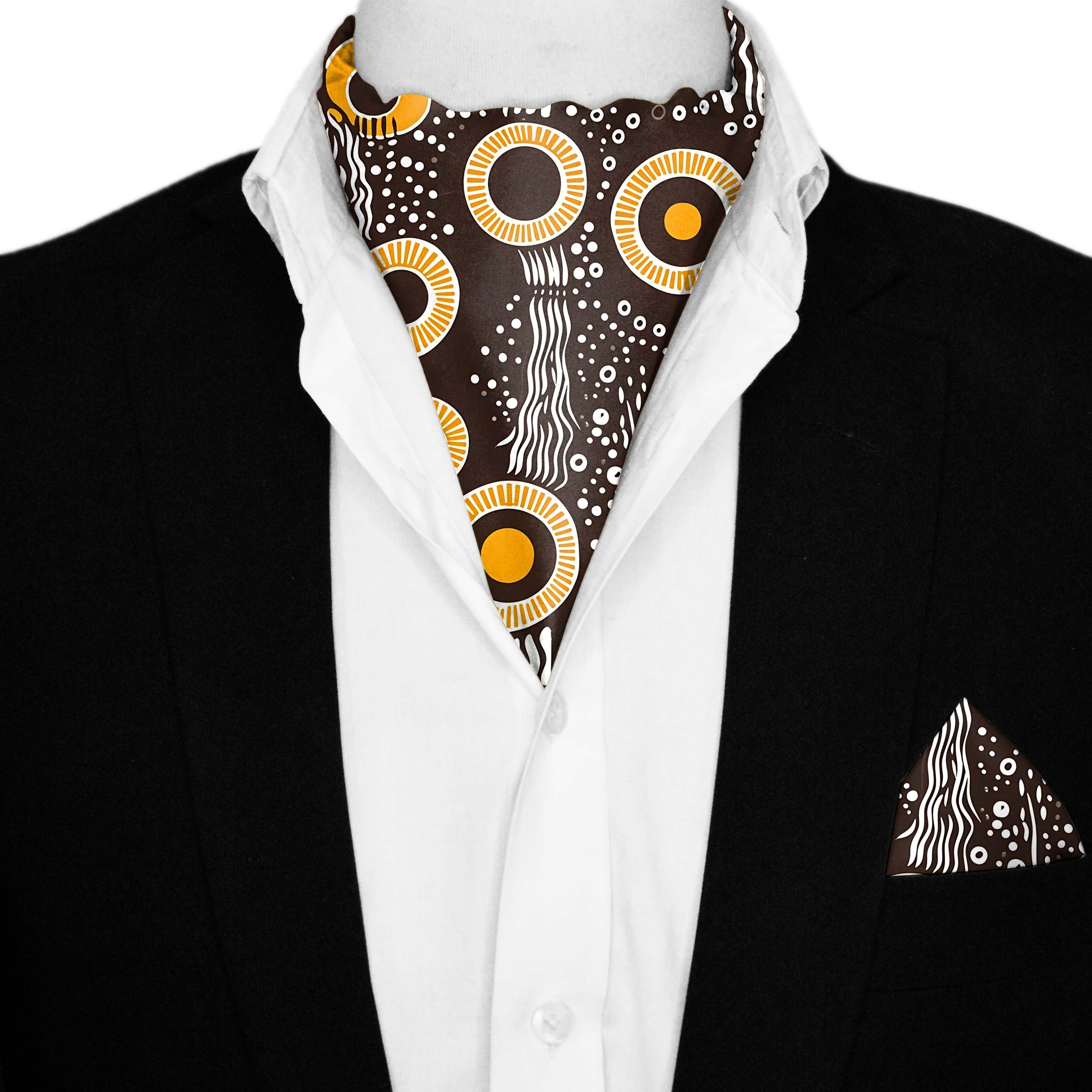 AUSTRALIAN ABORIGINAL SILK ASCOT AND POCKET SQUARE SET – PREMIUM COLLECTION
