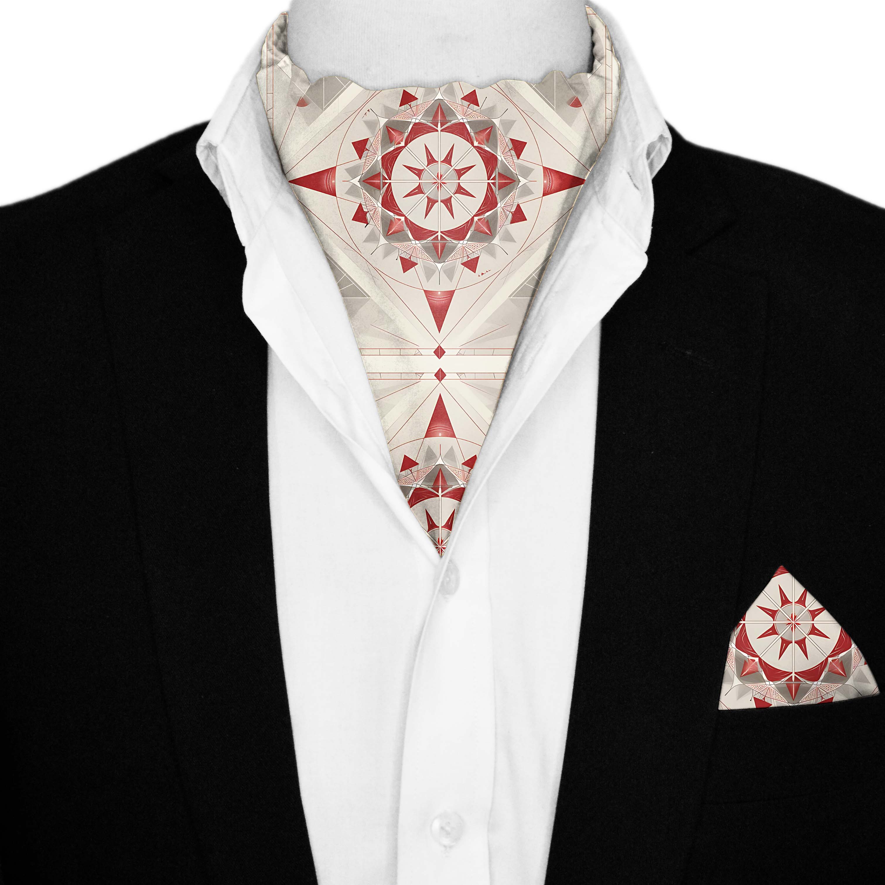 BEAUTIFUL STAR GEOMETRIC SILK ASCOT AND POCKET SQUARE SET – PREMIUM COLLECTION