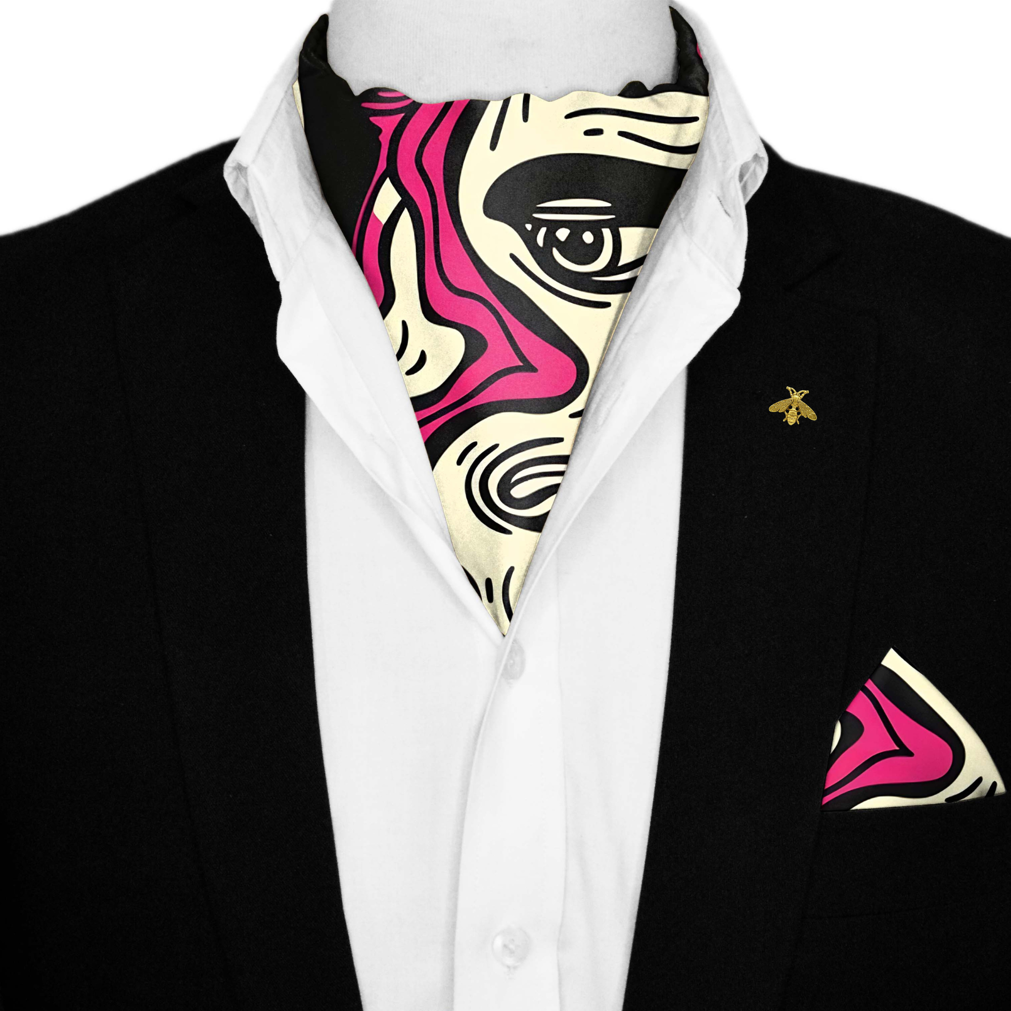 BEEH BECVAR SILK ASCOT WITH LAPEL PIN AND POCKET SQUARE
