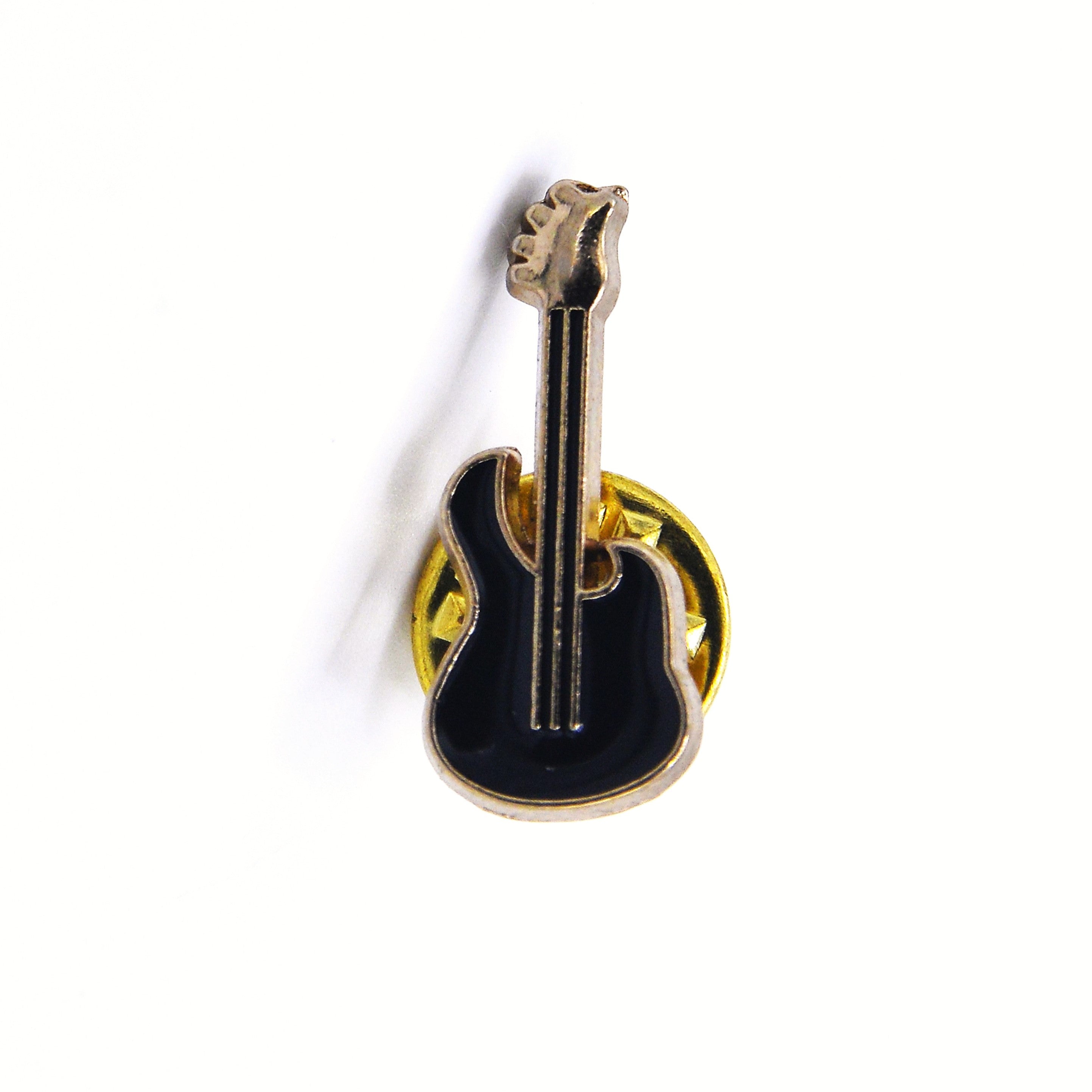 Enhance your fashion statement with a black and gold guitar brooch. This stylish lapel pin effortlessly balances sophistication and edgy charm.
