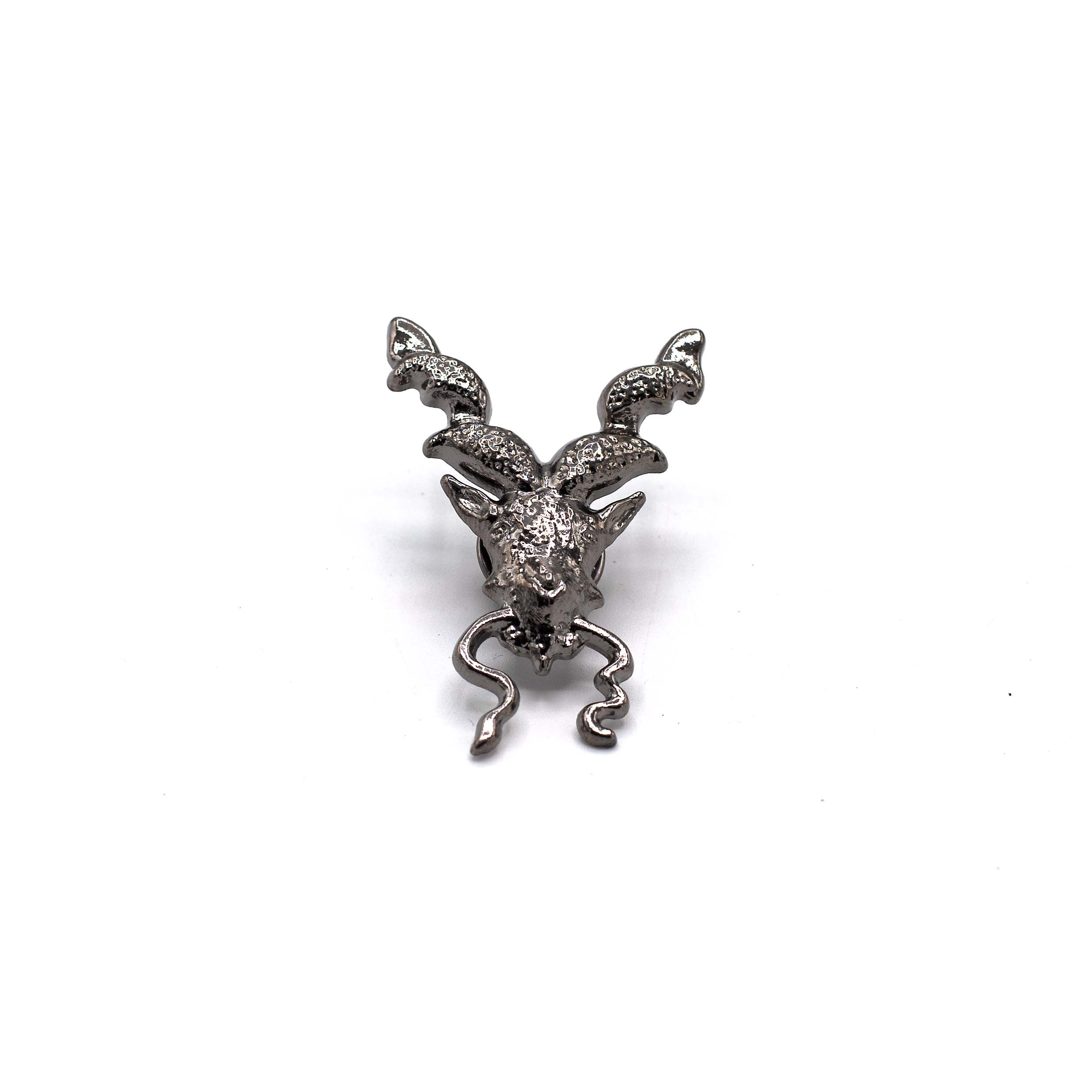Enhance your fashion statement with a black antique markhor brooch. This stylish lapel pin effortlessly balances sophistication and edgy charm.