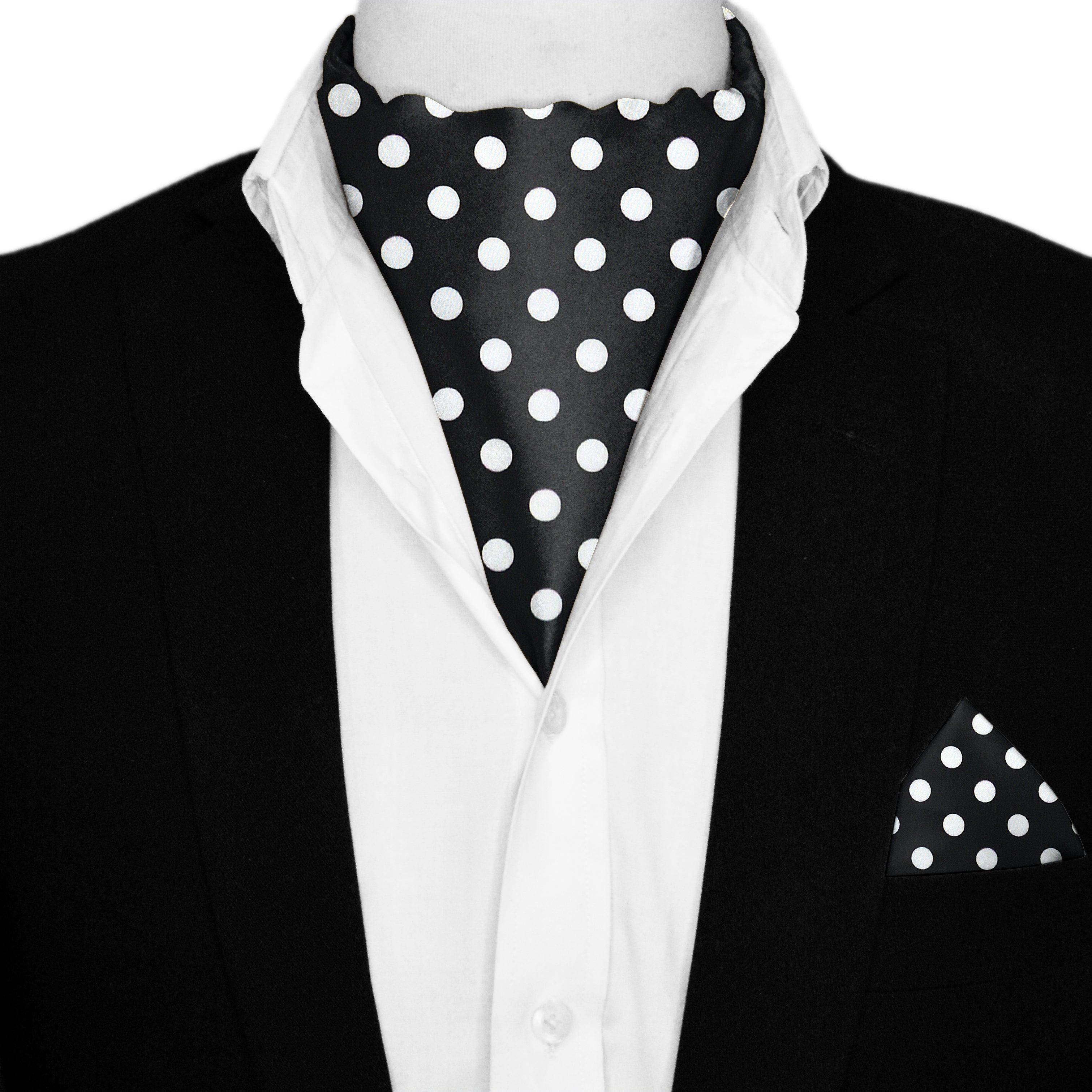 Indulge in elegance with our black polka dots silk ascot and pocket square. Effortlessly elevate your style with the enchanting solid color, lightweight fabric, and versatile design, making it perfect for any occasion