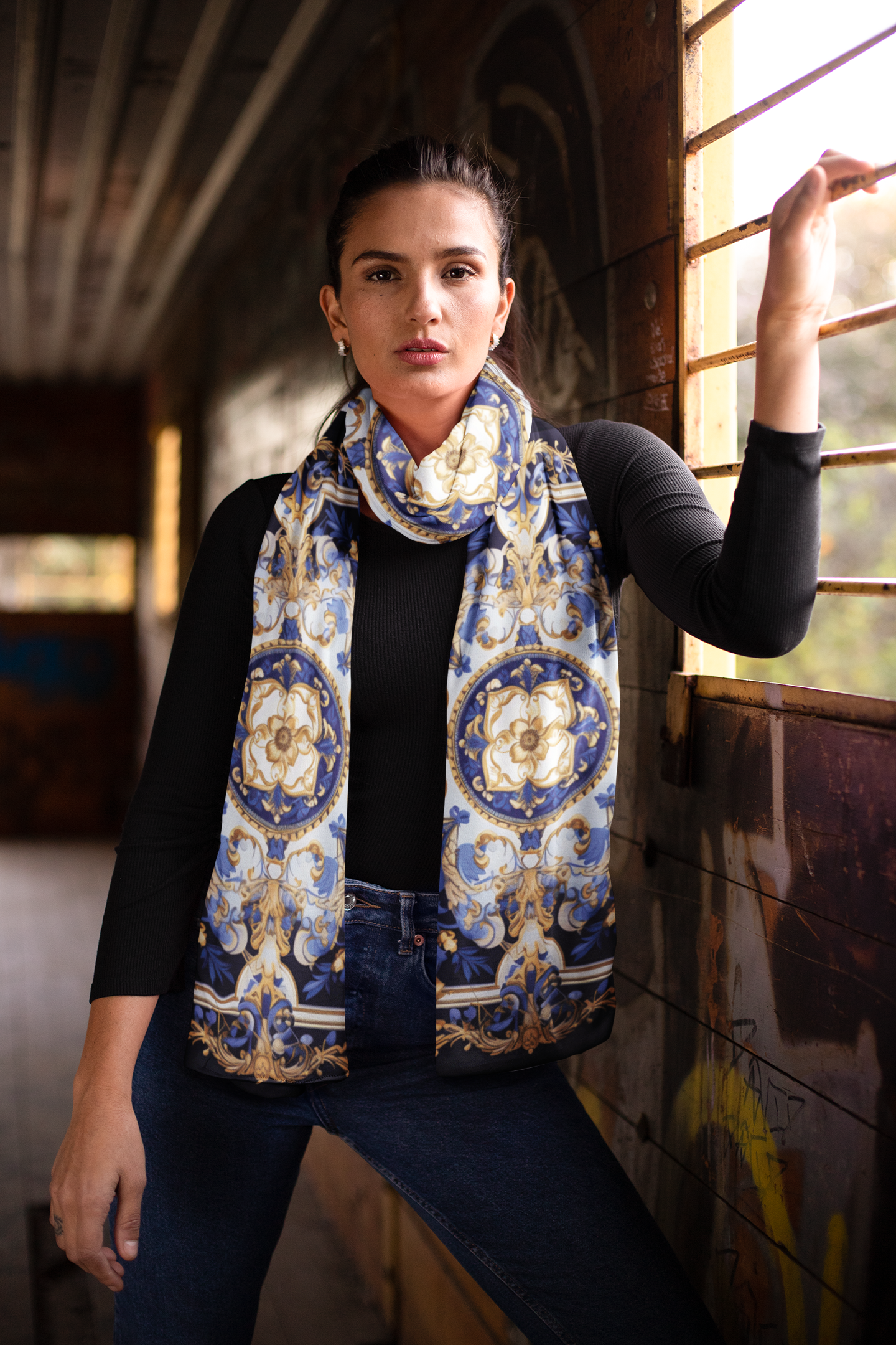 Elevate your style with the blue vintage elegant and traditional printed silk scarf. Silk scarfs exhibit a matte finish on one side and a glossy sheen on the other. This combination offers a stunning luminosity and a silky drape, making them ideal for both party and formal wear. Additionally, they stand out as an excellent choice to complement wedding outfits.