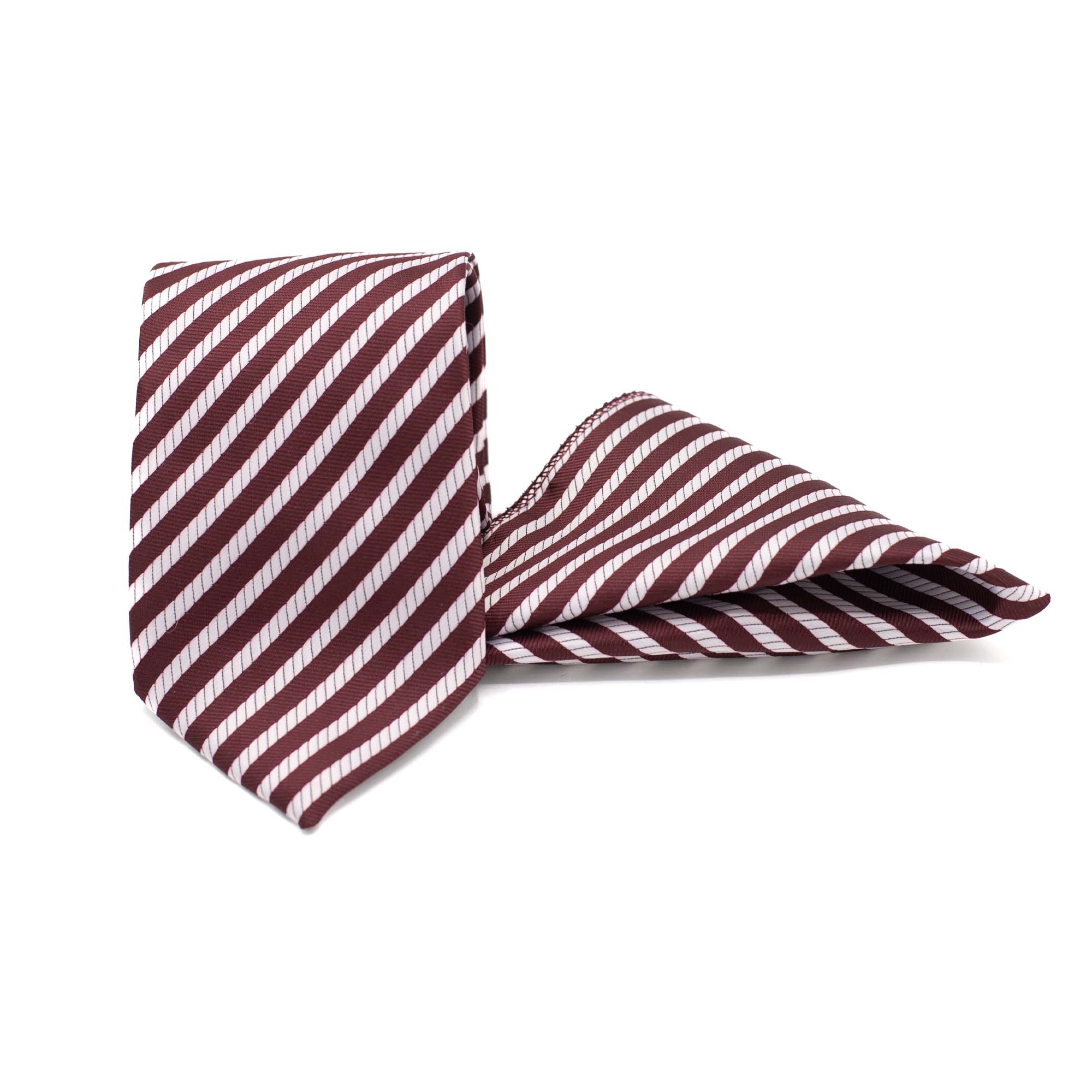 BURGUNDY STRIPE TIE AND POCKET SQUARE SET