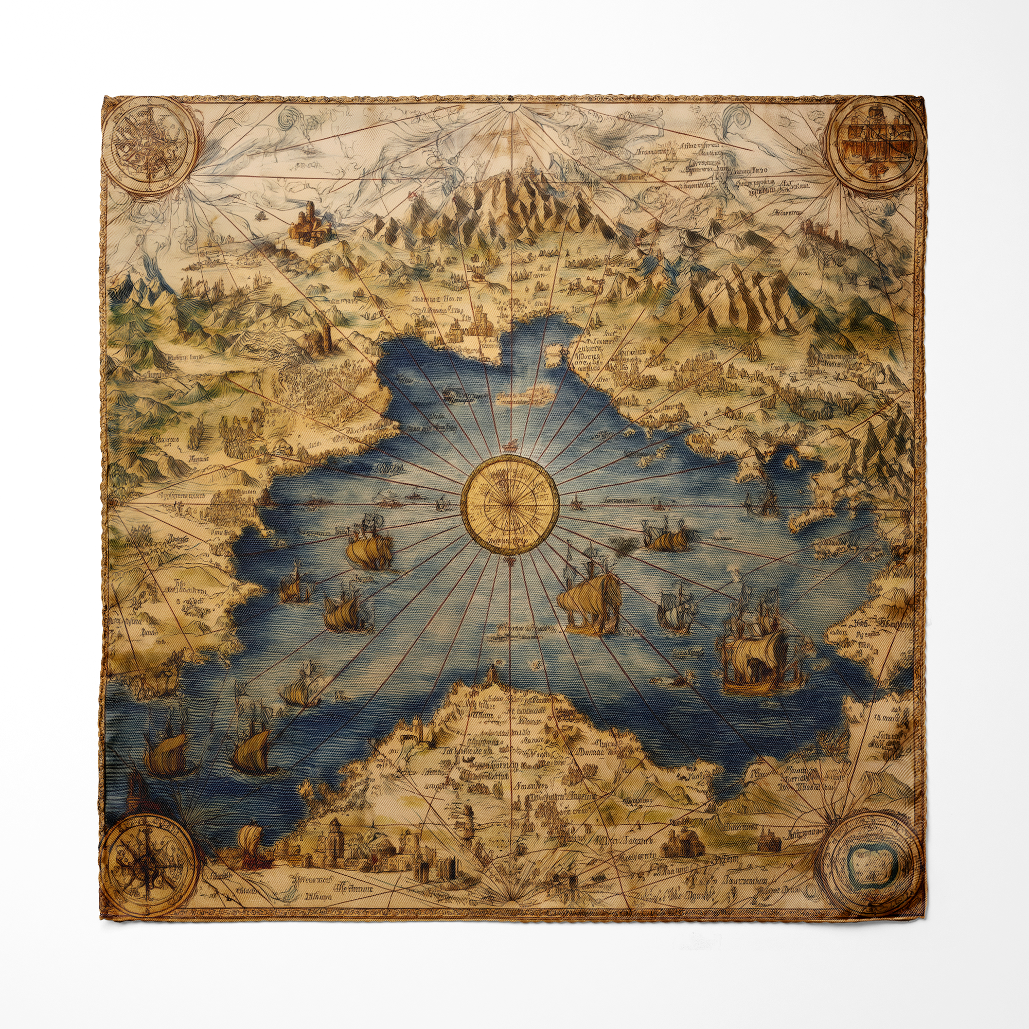 Sophisticated pocket square in radiant shades of gold and deep bronze, featuring a luminous mandala at the center surrounded by intricate circular filigree—symbolizing harmony, power, and timeless splendor.