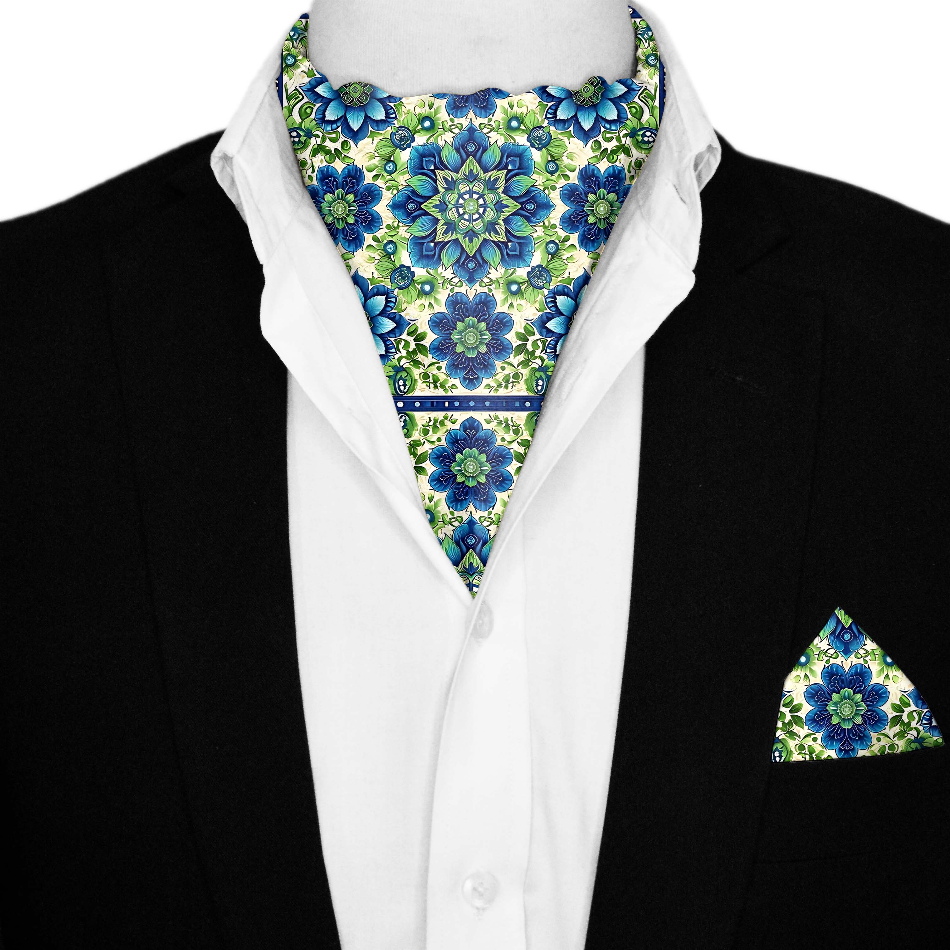ELEGANT ABSTRACT FLORAL SILK ASCOT AND POCKET SQUARE SET – PREMIUM COLLECTION