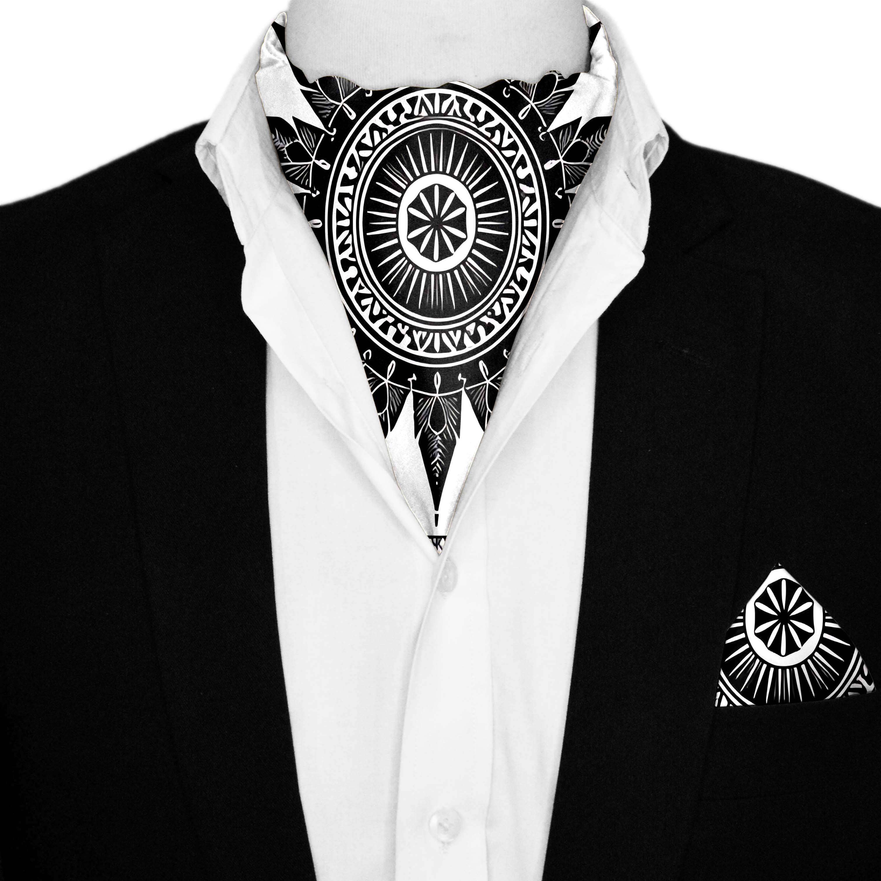 ETHNIC MANDALA SILK ASCOT AND POCKET SQUARE SET – PREMIUM COLLECTION