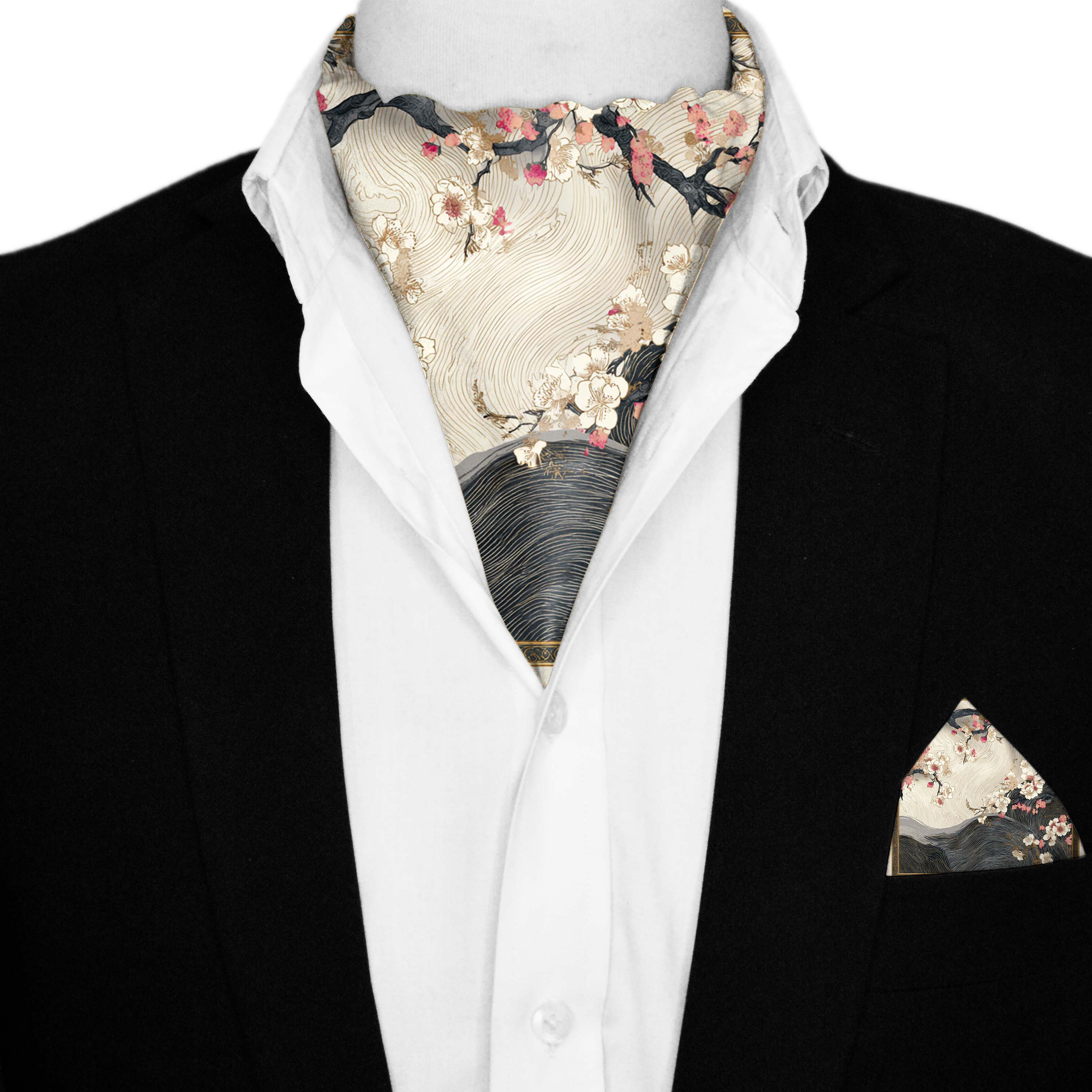 HANAMI SILK ASCOT AND POCKET SQUARE SET – PREMIUM COLLECTION
