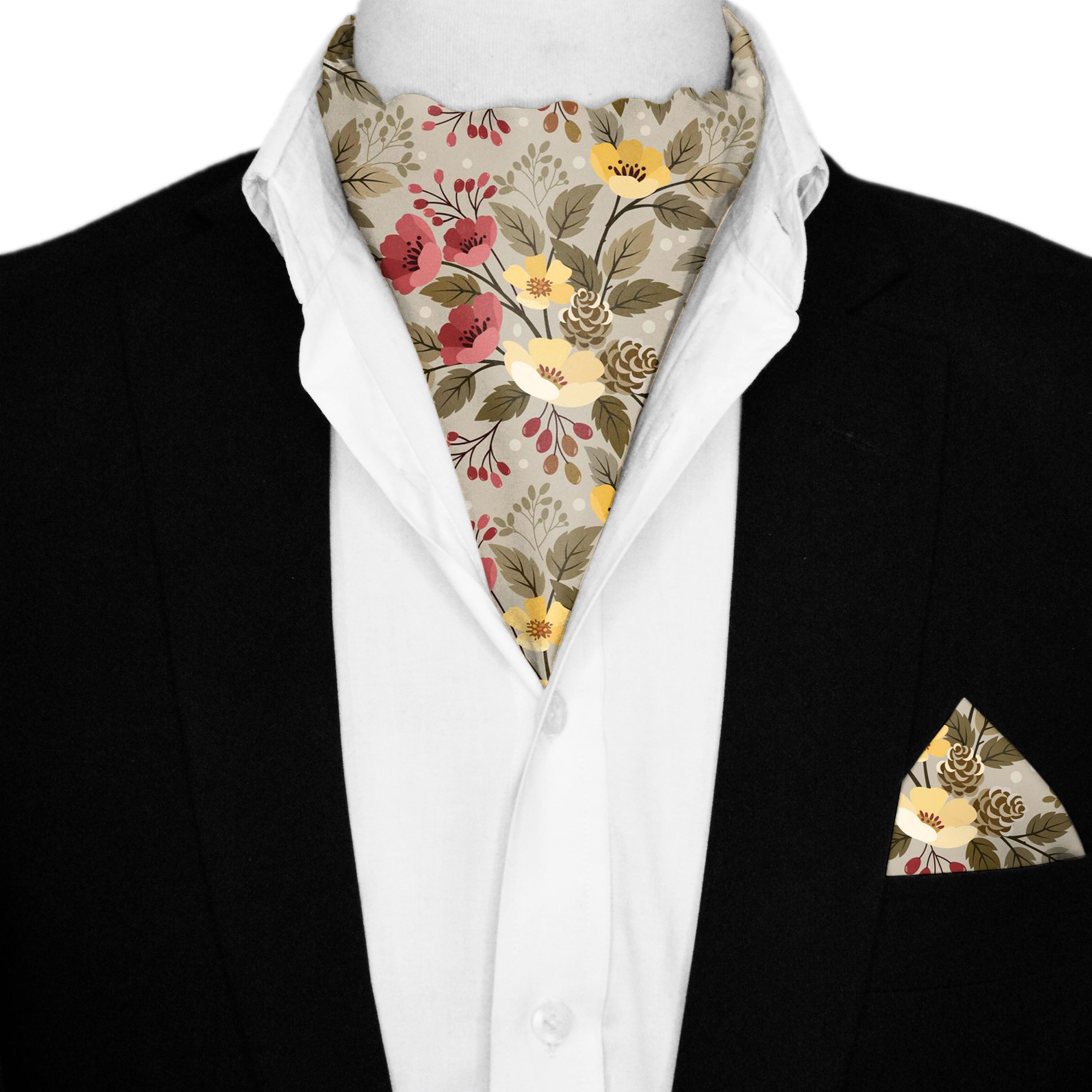 Indulge in elegance with our flower pattern silk ascot and pocket square. Effortlessly elevate your style with the enchanting solid color, lightweight fabric, and versatile design, making it perfect for any occasion