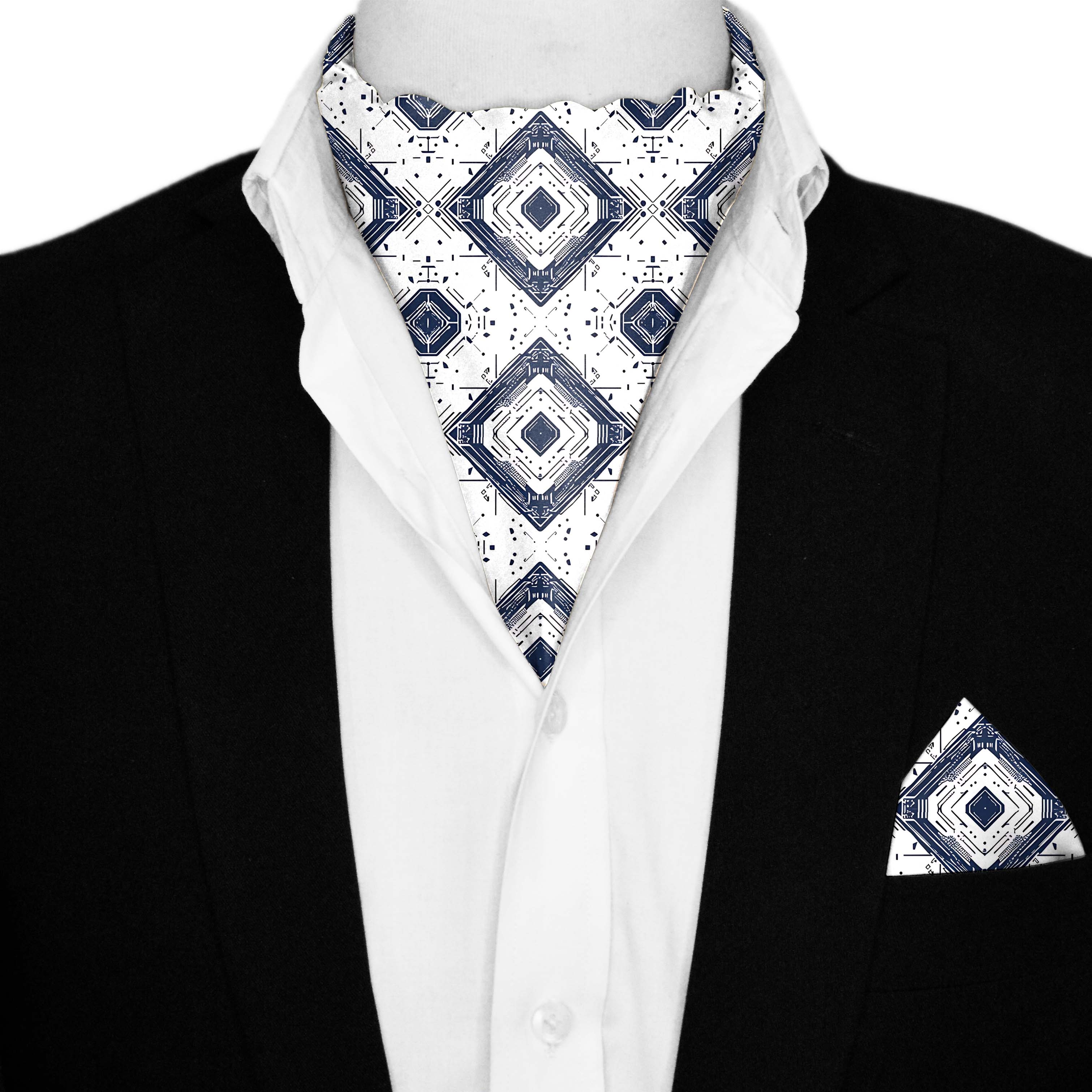 GEOMETRIC ABSTRACT SILK ASCOT AND POCKET SQUARE SET – PREMIUM COLLECTION