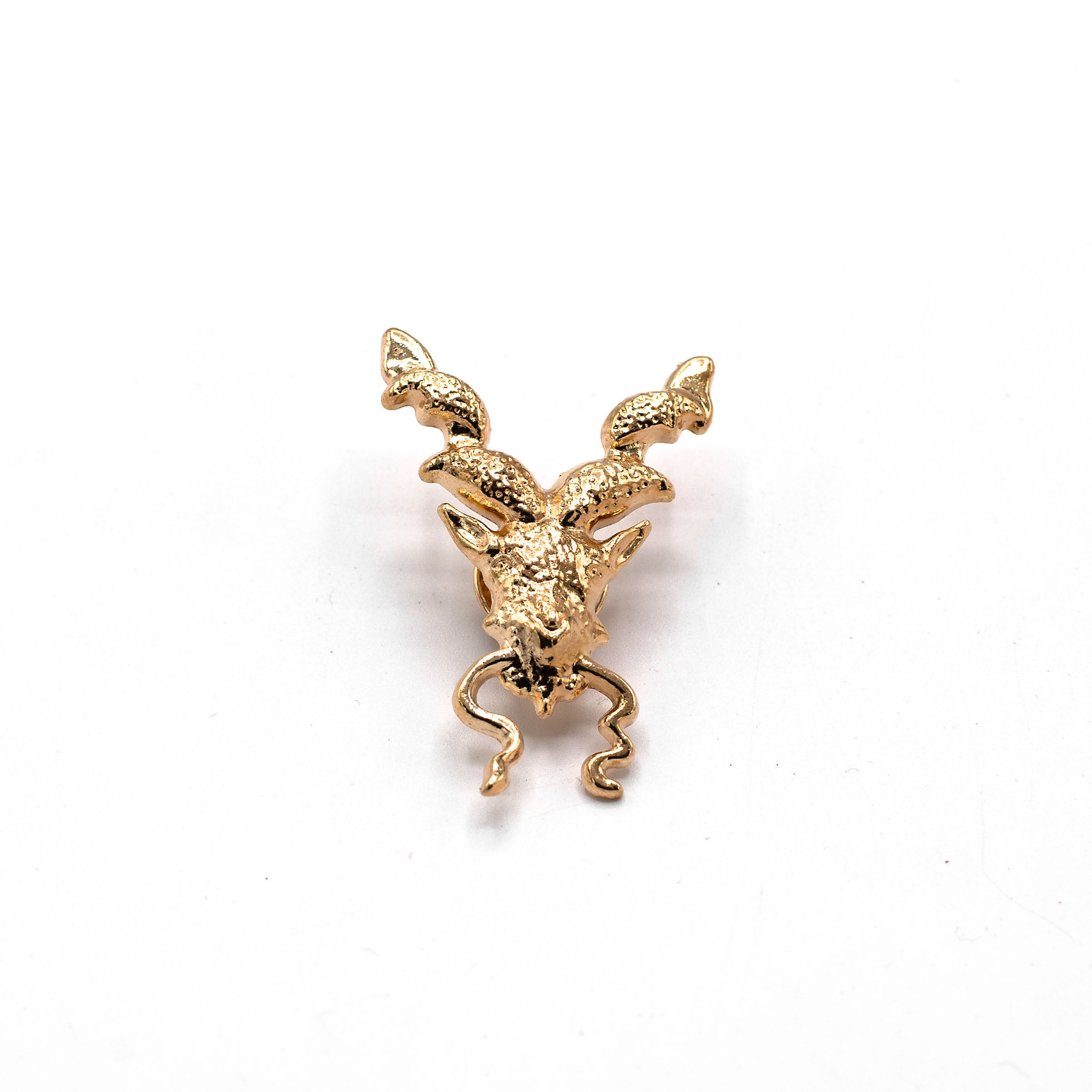 Enhance your fashion statement with a golden antique markhor brooch. This stylish lapel pin effortlessly balances sophistication and edgy charm.