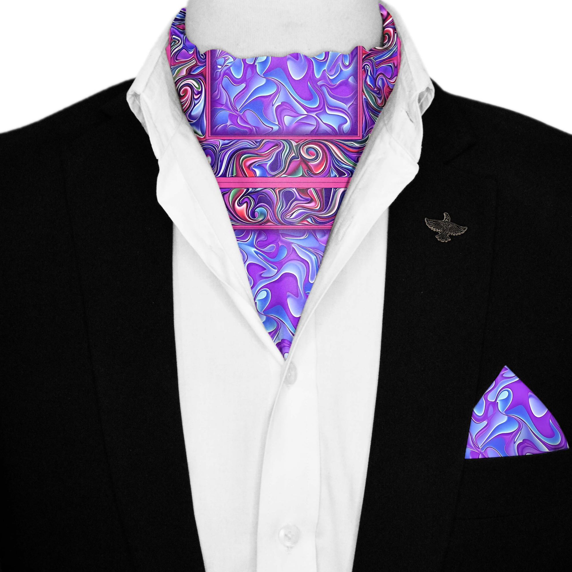 HOLOGRAPHIC IN NEON SILK ASCOT WITH LAPEL PIN AND POCKET SQUARE