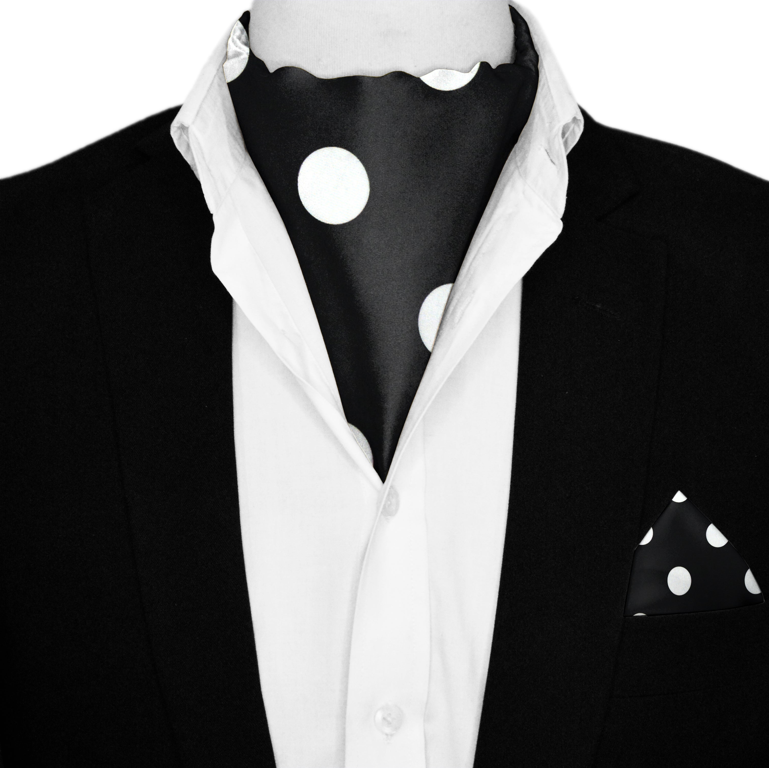 LARGE BLACK POLKA DOTS SILK ASCOT & POCKET SQUARE SET – PREMIUM COLLECTION