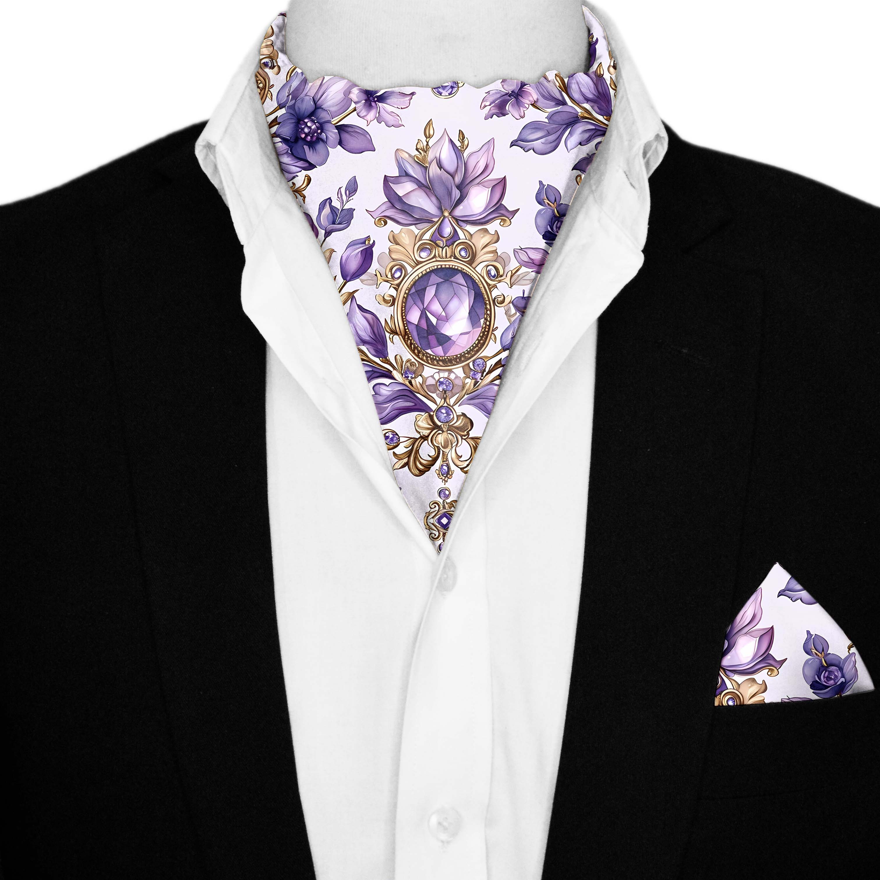 LISIANTHUS FLOWERS SILK ASCOT AND POCKET SQUARE SET – PREMIUM COLLECTION