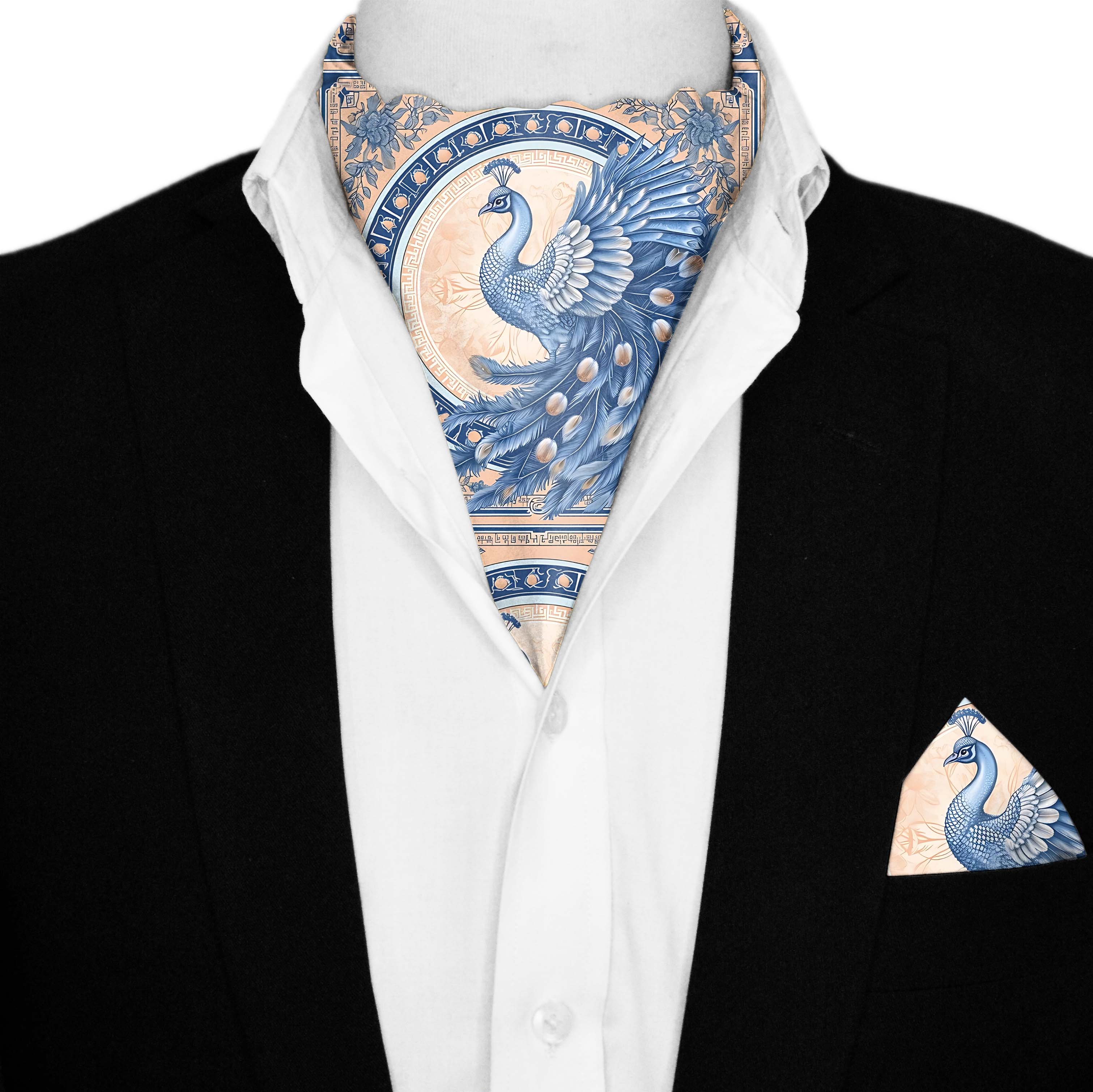 LUXURY CHINOISERIE SILK ASCOT AND POCKET SQUARE SET – PREMIUM COLLECTION