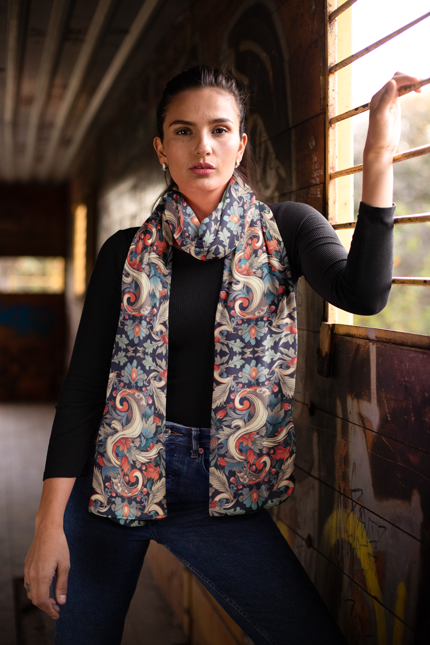 Elevate your fashion statement with a black silk scarf adorned with the essence of Mughal artistry. Silk scarfs exhibit a matte finish on one side and a glossy sheen on the other. This combination offers a stunning luminosity and a silky drape, making them ideal for both party and formal wear. Additionally, they stand out as an excellent choice to complement wedding outfits.
