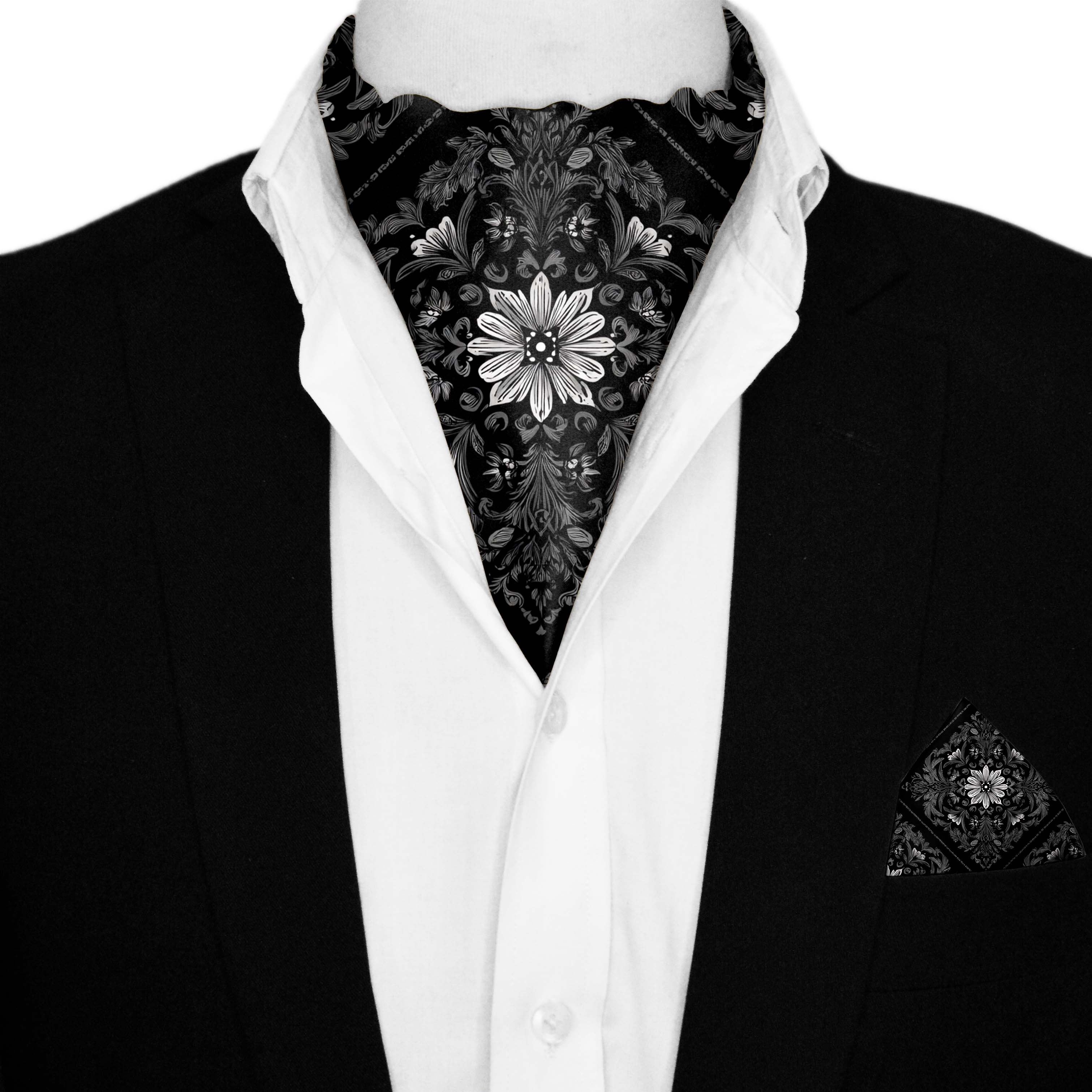 OBSIDIAN SILK ASCOT AND POCKET SQUARE SET – PREMIUM COLLECTION