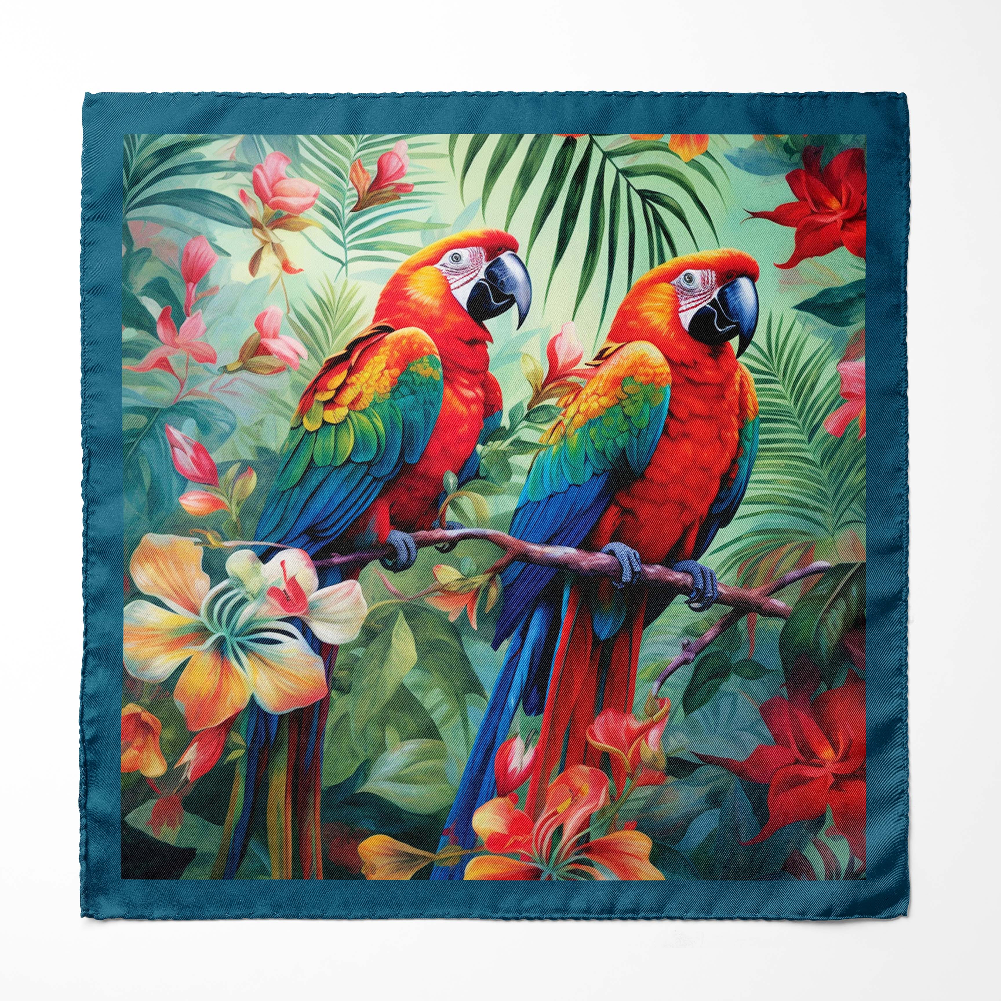 Sophisticated baby green color, infused with tropical birds and flowers, emanates an air of elegance, transforming it into a versatile accessory that seamlessly complements any suit or blazer. It's a blend of simplicity and style, enabling you to showcase your excellent taste while maintaining a classic appearance.