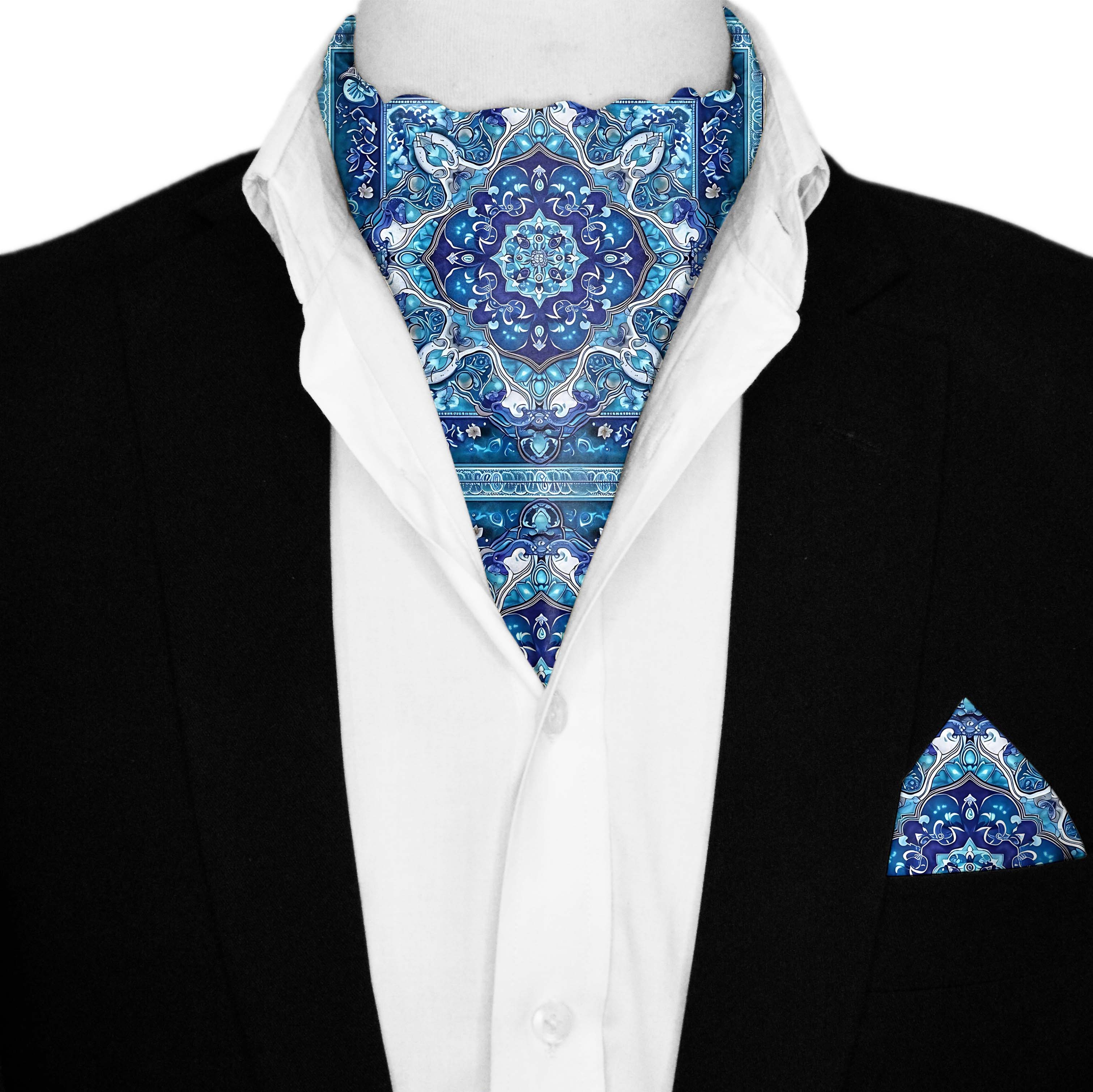 PERSIAN ART SILK ASCOT AND POCKET SQUARE SET – PREMIUM COLLECTION