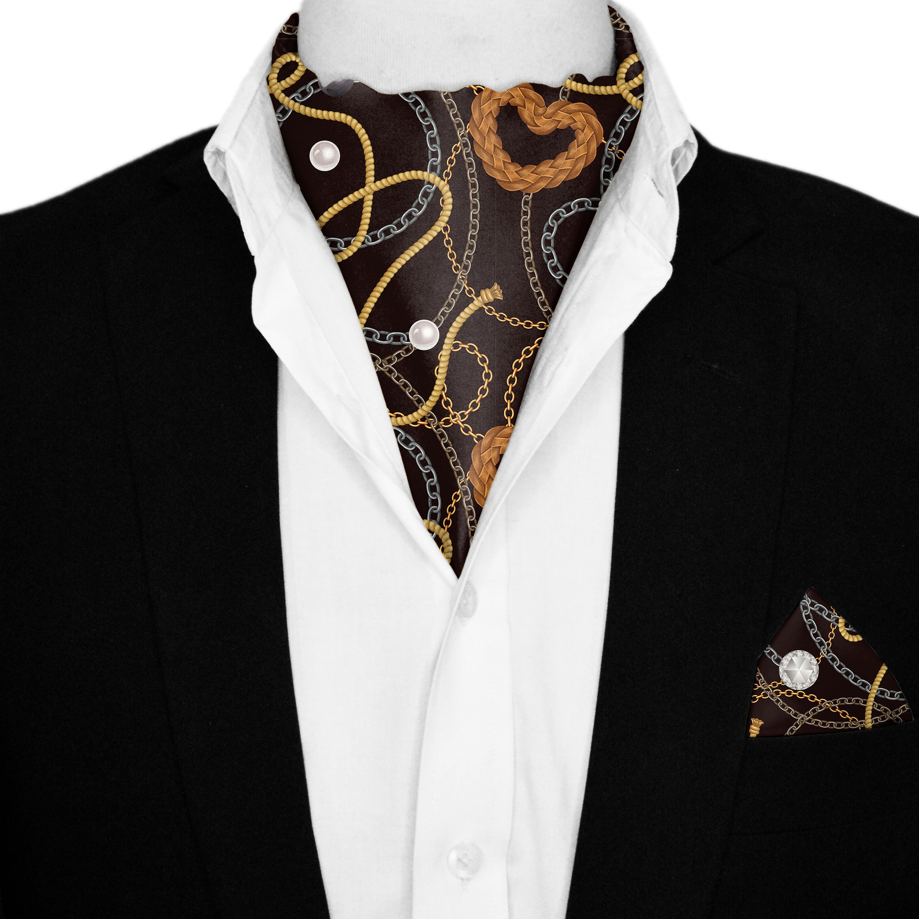 SEAMLESS CHAIN SILK ASCOT AND POCKET SQUARE SET – PREMIUM COLLECTION