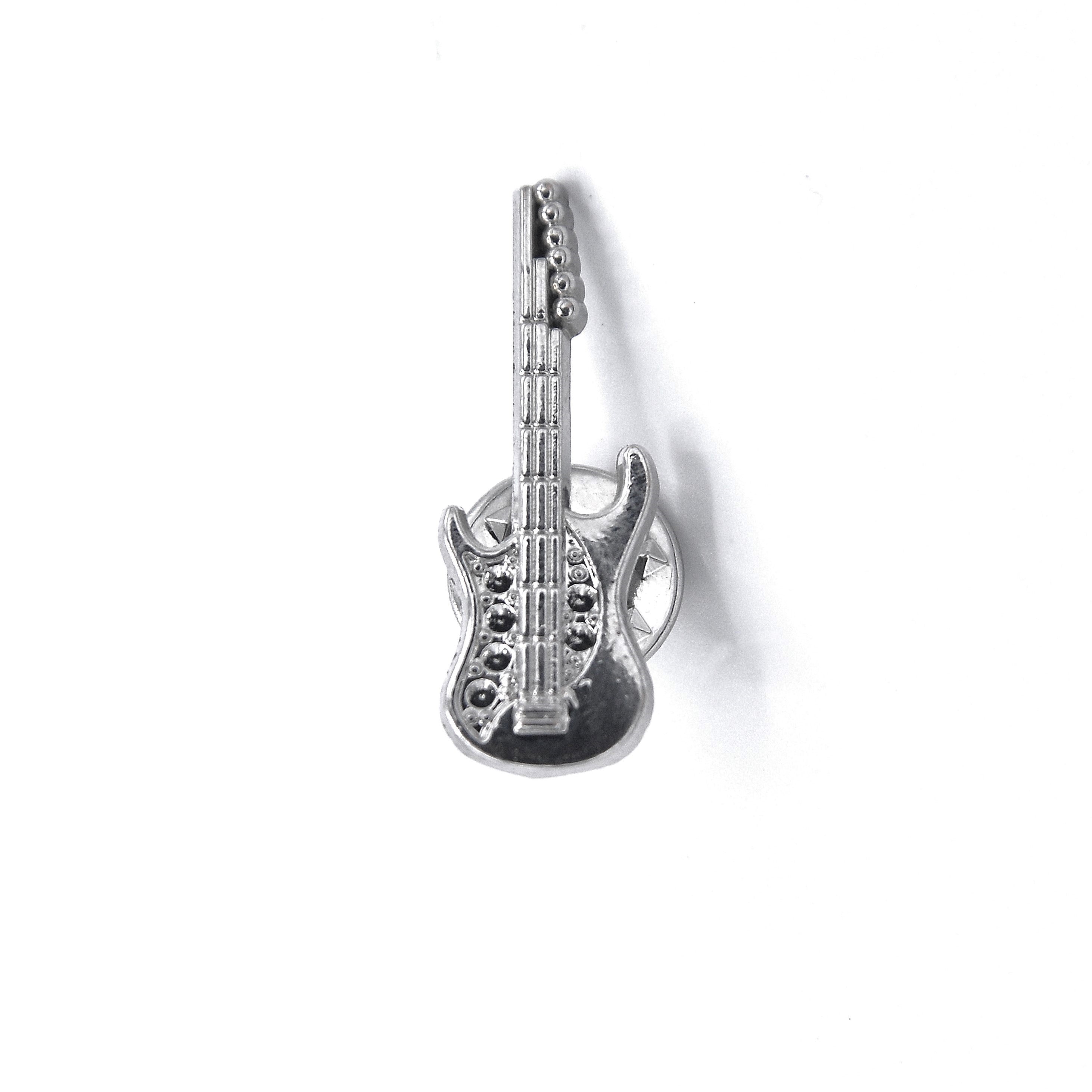Enhance your fashion statement with a silver and black guitar brooch. This stylish lapel pin effortlessly balances sophistication and edgy charm.