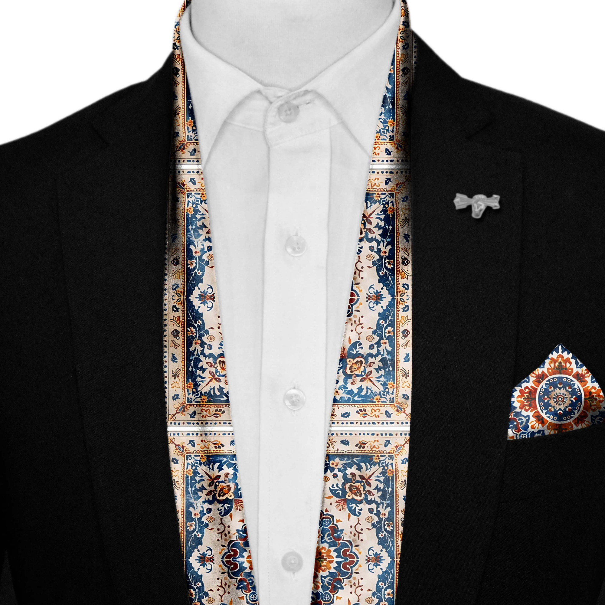 TURKMEN AFGHAN SILK SCARF WITH LAPEL PIN AND POCKET SQUARE