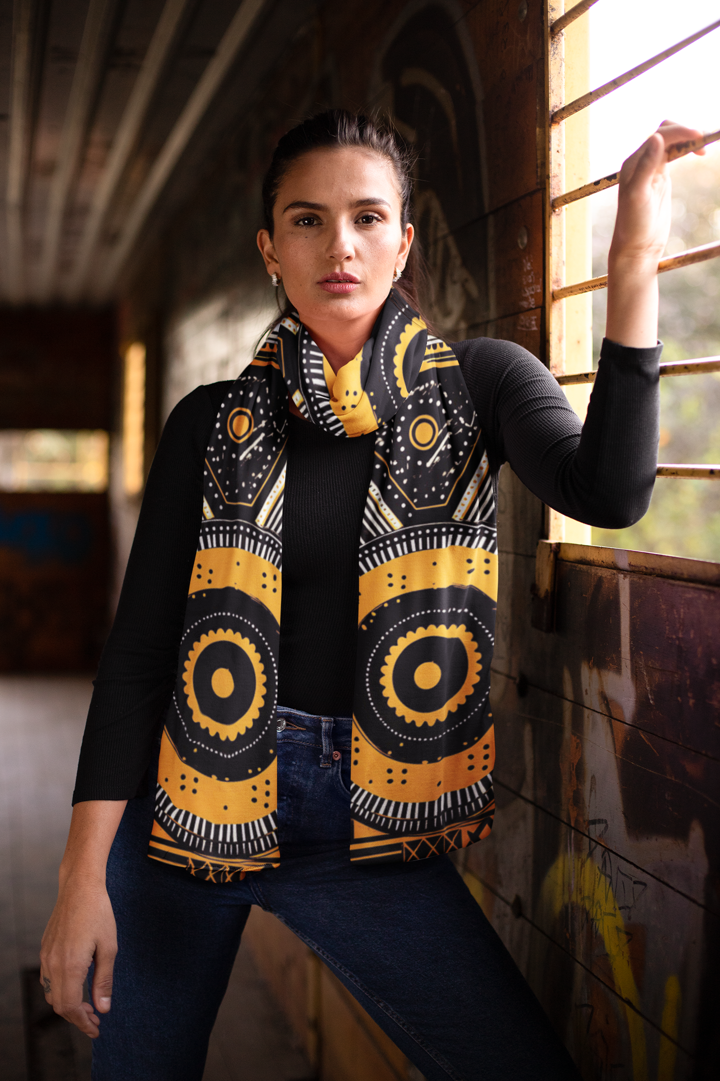 Elevate your fashion with sophistication by donning a black silk scarf adorned with an elegant vintage art motif. Silk scarfs exhibit a matte finish on one side and a glossy sheen on the other. This combination offers a stunning luminosity and a silky drape, making them ideal for both party and formal wear. Additionally, they stand out as an excellent choice to complement wedding outfits.