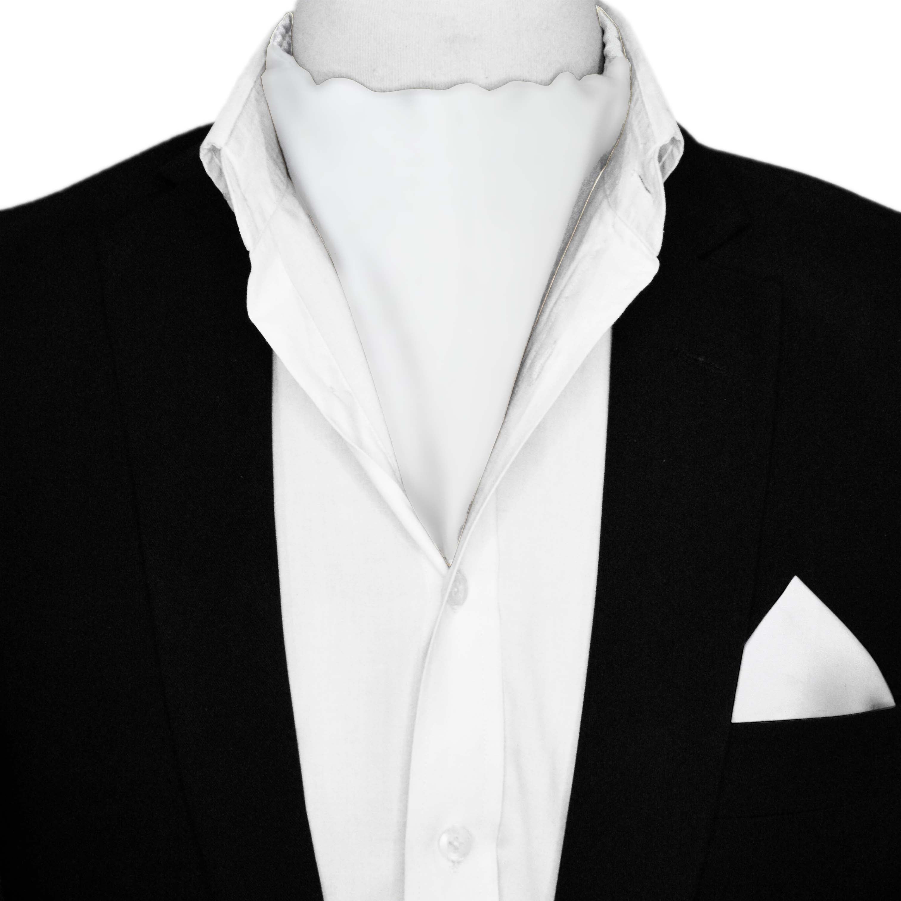 Indulge in elegance with our white silk ascot and pocket square. Effortlessly elevate your style with the enchanting solid color, lightweight fabric, and versatile design, making it perfect for any occasion
