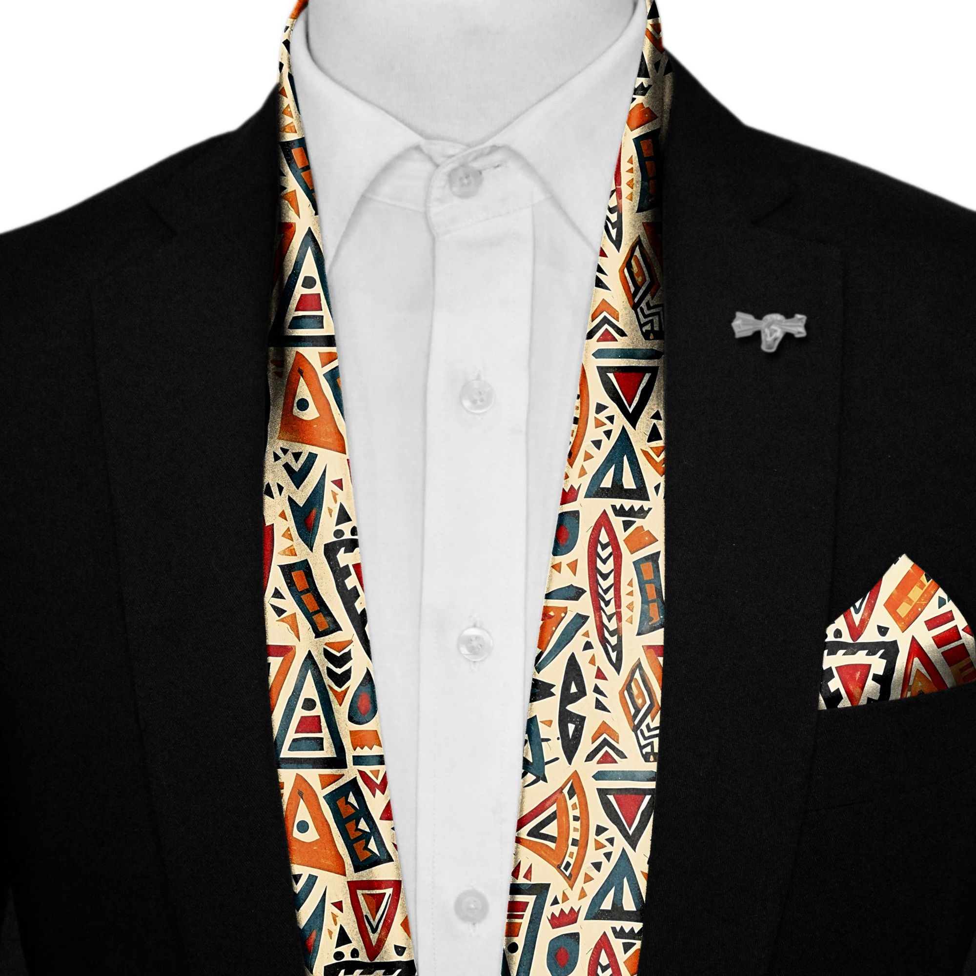 WONDERLAND SILK SCARF WITH LAPEL PIN AND POCKET SQUARE